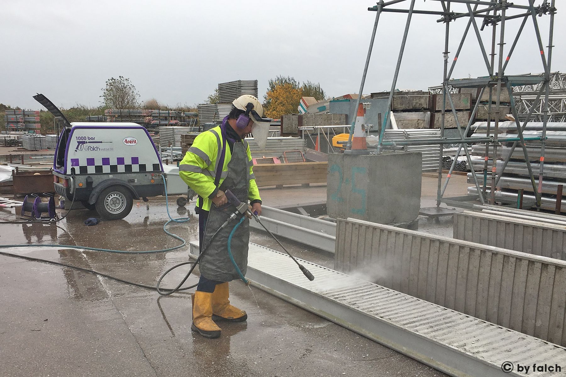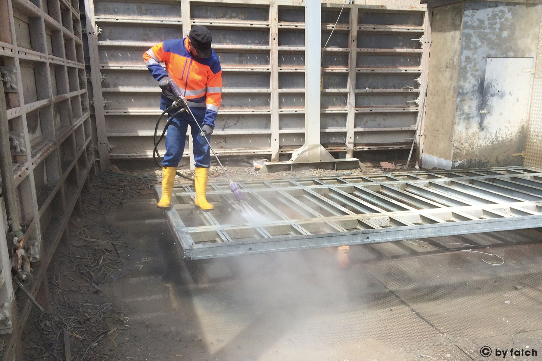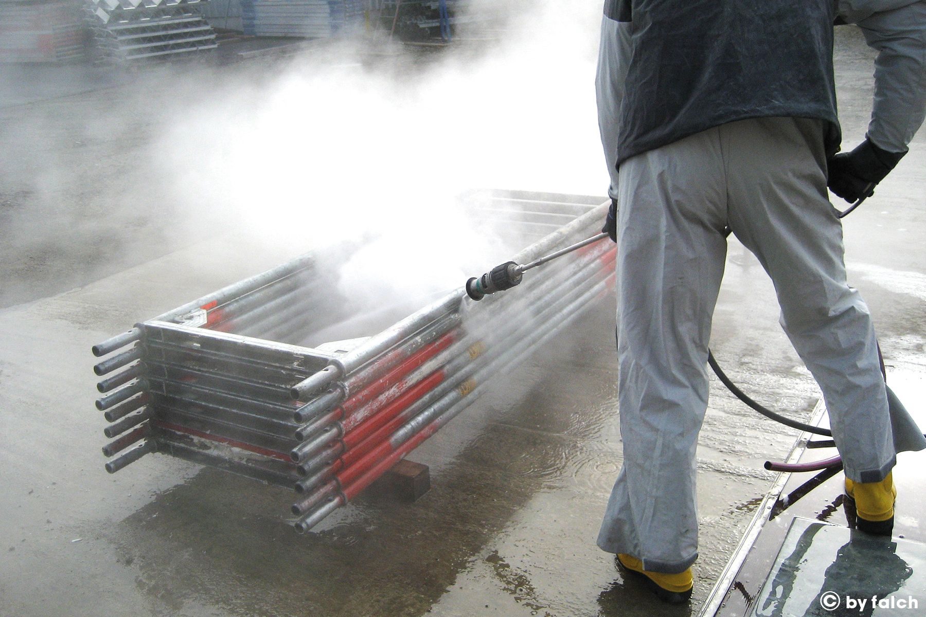 Falch ha dedicado más de 15 años al desarrollo de procesos diseñados para optimizar las soluciones de limpieza en diversos ámbitos. Su enfoque se ha centrado en el diseño de bombas y boquillas especializadas, así como en la correcta configuración de las áreas de limpieza en contextos operativos diarios. Las ventajas de estas soluciones en comparación con la limpieza manual o el uso de máquinas de cepillado son notables. En los últimos años, ha habido un aumento constante en la demanda por parte de los clientes para la limpieza de andamios, a pesar del incremento en los costes de las limpiezas a alta presión. La preservación de los sistemas de andamiaje representa actualmente un desafío significativo para los fabricantes y sus flotas de alquiler. Descubra la eficacia de nuestras soluciones y valide su rendimiento mediante múltiples aplicaciones.